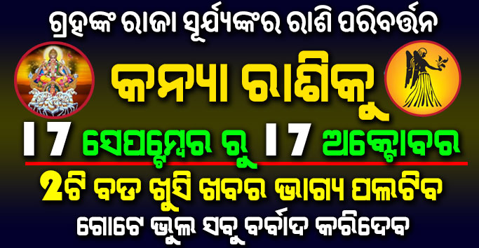 ଗ୍ରହଙ୍କ ରାଜା ସୂର୍ଯ୍ୟଙ୍କ ରାଶି ପରିବର୍ତ୍ତନ, କନ୍ୟା ରାଶିକୁ ସୂର୍ଯ୍ୟଙ୍କ ଗୋଚର ଫଳରେ ଏହି ରାଶିକୁ ମିଳିବ 2ଟି ବଡ ଖୁସି ଖବର