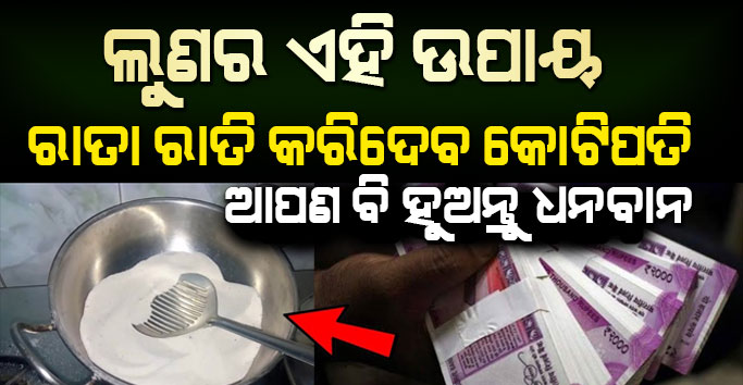 ଲୁଣ ସାଧାରଣ ଲୁଣ ଦ୍ଵାରା କିଭଳି ଜେନ ଧନବାନ ହୋଇ ପାରିବ । କୁହାଯାଏ କି ଏହାକୁ ନିଜ ଘରେ ରଖିବା ଆଡବାରା ପଇସା ଚୁମ୍ବକ ଭଳି ଆସିଥାଏ । ଖାଇବାରେ ଲୁଣ ନଥିଲେ ଏହା ଆମ ଖାଇବାକୁ ନଷ୍ଟ କରି ଦେଇ ଥାଏ । ଏହା ଆମକୁ ସ୍ଵାଦ ହିନ ଲାଗି ଥାଏ । କୁହାଯାଏ କି ଯେବେ ଠାରୁ ଲୁଣର ଆବିଷ୍କାର ହୋଇଛି ସେବେ ଠାରୁ ଏହହା କୁହାଯାଇଛି କି ଏହା ଏକ ମହତ୍ଵ ପୂର୍ଣ୍ଣ ଜିନିଷ । ଏହା ମଧ୍ୟ କୁହାଯାଏ କି ଲୁଣ ବିନା ଜୀବନରେ ଅନେକ ସମସ୍ଯା ମାନ ଆସିପାରେ ।