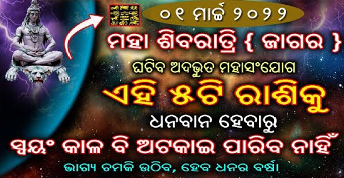 ମହା ଶିବରାତ୍ରି 01 ମାର୍ଚ୍ଚ, (ଜାଗର) ଠାରୁ 5ଟି ରାଶିଙ୍କର ଜୀବନ ବଦଳିଯିବ
