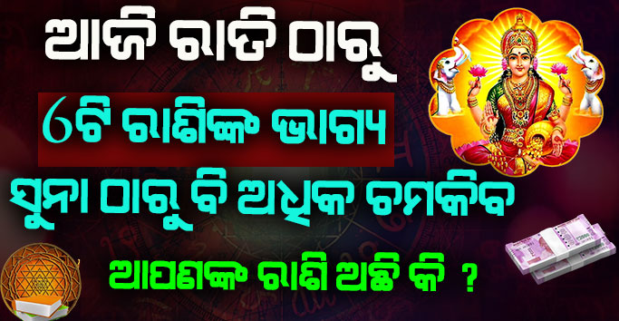 ଆଜି ରାତିଠାରୁ ଏହି 6ଟି ରାଶି ଭାଗ୍ୟଶାଳୀ, ସୁନା ଠାରୁ ବି ଅଧିକ ଚମକିବ ଆପଣଙ୍କ ଭାଗ୍ୟ… ଦେଖନ୍ତୁ ଆପଣଙ୍କ ରାଶି ଅଛି କି ?