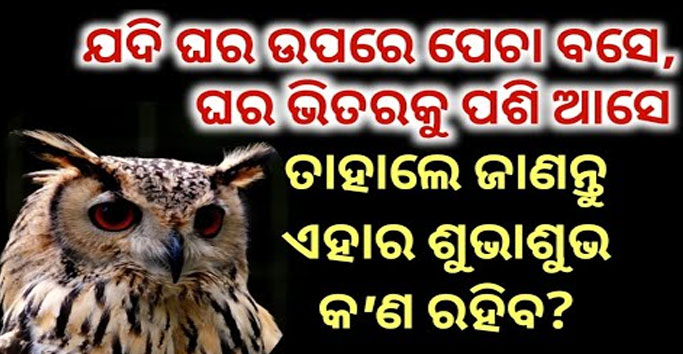 ଜୀବନରେ ଅନେକ ପ୍ରକାରର ସମସ୍ଯା ଆସିଥାଏ । ସେହିସବୁ ସମସ୍ୟାକୁ ସମାଧାନ କରିବା ପାଇଁ ମଧ୍ୟ ବହୁତ ଉପାୟ କରିଥାଉ । ଠିକ ସେହି ପରି ସବୁ ସମସ୍ୟାର ସମାଧାନ ମଧ୍ୟ ରହିଛି । କିଛି ଜିନିଷ ରହିଛି ବାସ୍ତୁ ଶସ୍ତ୍ର ଅନୁସାରେ ଶୁଭ ଅଶୁଭ ରହିଥାଏ । ପୃଥିବୀରେ ଅନେକ ପ୍ରକାରର ପକ୍ଷୀ ଅଛନ୍ତି । ସମସ୍ତଙ୍କର ନିଜସ୍ୱ ମଧ୍ୟ ରହିଥାଏ । ଏପରି କିଛି ପକ୍ଷୀ ଅଛନ୍ତି ,ଯେଉଁ ମାନେ ଅଶୁଭ ଓ ଶୁଭର ସଙ୍କେତ ଦେଇଥାନ୍ତି । ଆଜି ଆସନ୍ତୁ ଜାଣିବା ଘରେ ପେଚା ବସିବା ଦ୍ଵାରା ଭଲ ହୋଇଥାଏ ନା ଖରାପ ହୋଇଥାଏ ।