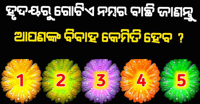 ଉପରେ ଦେଖୁଥିବା ପଞ୍ଚୋଟି ନମ୍ବର ମଧ୍ୟରୁ ଗୋଟିଏ ବାଛନ୍ତୁ ଯେଉଁ ନମ୍ବରଟି ସର୍ବ ପ୍ରଥମେ ଆପଣଙ୍କୁ ଆକର୍ଷିତ କରୁଅଛି । 1: ଯେଉଁ ବ୍ୟକ୍ତି ଏହି ନମ୍ବରଟି ବାଛିଥିଲେ ଜାଣି ରଖନ୍ତୁ କି ଆପଣଙ୍କର ପ୍ରେମ ବିବାହ ହେବାକୁ ଯାଉଛି । ବହୁତ କଷ୍ଟରେ ସମସ୍ତଙ୍କୁ ବୁଝେଇବା ପରେ ହିଁ ଏହା ସମ୍ଭବ ହେବ । ଘର ପରିବାର ଲୋକ ସମସ୍ତେ ଆପଣଙ୍କ ସାଥ ଦେବେ । ଆପଣଙ୍କ ଜିଦି ସାମ୍ନାରେ ସମସ୍ତେ ମୁଣ୍ଡ ନୂଆଁଇବା ପାଇଁ ବାଧ୍ୟ ହେବେ ।