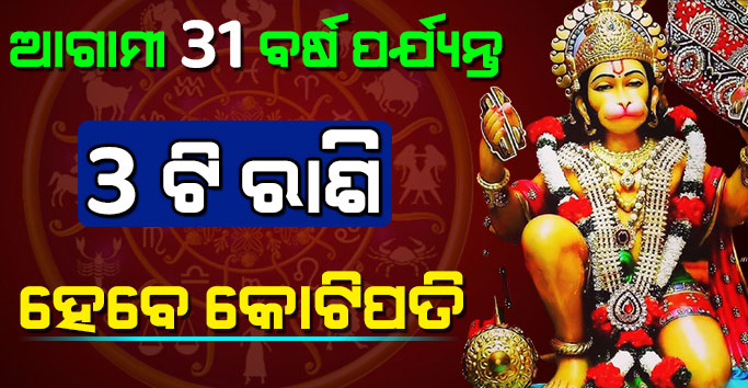 ଜ୍ୟୋତିଷ ଗଣନା ଦ୍ୱାରା ବ୍ୟକ୍ତିର ବର୍ତ୍ତମାନ ଓ ଭବିଷ୍ୟତ ଜଣାପଡ଼ିଥାଏ । ତେବେ ଆଗାମୀ 31 ବର୍ଷ ପର୍ଯ୍ୟନ୍ତ ଏହି 3 ରାଶି ଉପରେ ପ୍ରଭୁ ହନୁମାନ ଙ୍କ କୃପା ରହିବାକୁ ଯାଉଛି । ଏହି ରାଶିର ବ୍ୟକ୍ତି ମାନଙ୍କ ଜୀବନରେ ବହୁତ ବଡ ପରିବର୍ତ୍ତନ ହେବାକୁ ଯାଉଛି । ଏହି ରାଶିର ବ୍ୟକ୍ତି ମାନଙ୍କ ଭାଗ୍ୟ ଖୋଲିବାକୁ ଯାଉଅଛି । ତେବେ ଚାଲନ୍ତୁ ଜାଣିବା ସେହି ରାଶି ଗୁଡ଼ିକ ବିଷୟରେ ।