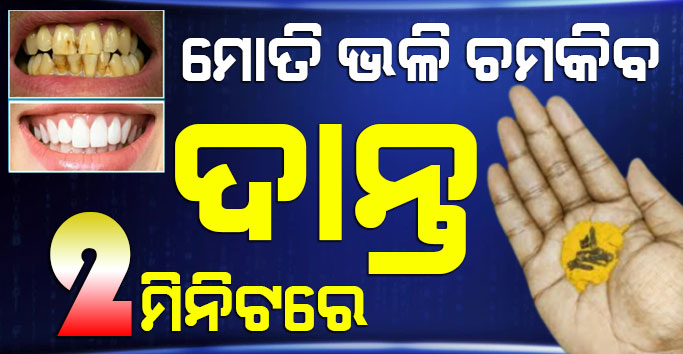 ବନ୍ଧୁଗଣ ଅନେକ କାରଣ ପାଇଁ ଆମ ଦାନ୍ତ ହଳଦିଆ ବା କଳା ପଡିଯାଏ । ଯାହା ପାଇଁ ଆମର ବ୍ୟକ୍ତିତ୍ବ କମ ହୋଇଯାଏ । ଯଦି ଆପଣଙ୍କର ଦାନ୍ତ ସୁନ୍ଦର ନ ଦେଖାଯିବା ତେବେ ଆପଣ କାହା ସହ ଖୋଲିକି କଥା ହେବାକୁ ଲାଜ କରିଥାନ୍ତି । ଯଦି ଆପଣ ନିଜର ଦାନ୍ତକୁ ପ୍ରାକୃତିକ ଉପାୟରେ ଧଳା କରିବାକୁ ଚାହୁଁଛନ୍ତି ବ ହଳଦିଆ ବା କଳା ପଡିଥିବା ଦାନ୍ତ କୁ ସଫା କରିବାକୁ ଚାହୁଁଛନ୍ତି ତେବେ ଆଜିର ଏହି ଘରୋଇ ଉପଚାର ବିଷୟରେ ନିଶ୍ଚୟ ଜାଣନ୍ତୁ । ଏହା ଏମିତି ଏକ ଚମତ୍କାରୀ ଉପଚାର ଅଟେ ଯାହା ୨ ମିନିଟରେ ଆପଣଙ୍କର ଦାନ୍ତକୁ ମୋତି ଭଳି ଚମକାଇ ଦେବ । ତେବେ ଆସନ୍ତୁ ଜାଣିବା ବିସ୍ତାର ଭାବେ ।