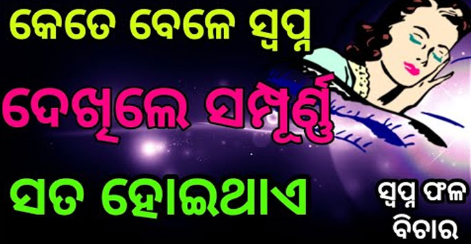 ଆଜି ଆମେ ଆପଣଙ୍କୁ କେତେବେଳେ ସ୍ଵପ୍ନ ଦେଖିଲେ ସତ ହୋଇଥାଏ ସେହି ବିଷୟରେ କହିବାକୁ ଯାଉଛୁ । ରାତିର ଦ୍ଵିତୀୟ ପ୍ରହାର ରୁ ଚତୁର୍ଥ ପ୍ରହାର ମଧ୍ୟରେ ଯେଉଁ ସ୍ଵପ୍ନ ଦେଖିଥାଉ ତାହା ସ୍ଵପ୍ନ ବହୁତ କ୍ଷେତ୍ର ରେ ସତ ହୋଇଥାଏ । ଦକ୍ଷିଣ କଡ ମାଡି ରାତିରେ ଶୋଇବା ସମୟରେ ସ୍ଵପ୍ନ ଦେଖିଲେ ସେହି ସ୍ଵପ୍ନ ବହୁତ କ୍ଷେତ୍ରରେ ସତ ହୋଇଥାଏ । ଗୁରୁପାକ ସେବନ କରି ଖାଦ୍ୟ ଗ୍ରହଣ କରିଲେ ବିଳମ୍ବଳିତ ରାତିରେ ଶଯ୍ୟା ଗ୍ରହଣ କରିବା ସମୟରେ ଯେଉଁ ସ୍ଵପ୍ନ ମନକୁ ଆସିଥାଏ ସେହି ସ୍ଵପ୍ନ ଅମଙ୍ଗଳାର ସୁହାୟକ ହୋଇଥାଏ ।