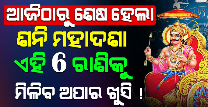 ନମସ୍କାର ବନ୍ଧୁଗଣ, ଆଜିଠାରୁ ଶେଷ ହେବାକୁ ଯାଉଛି ଶନି ମହଦଶା । ଏହାଫଳରେ କିଛି ରାଶି ଉପରେ ଖୁସିର ବର୍ଷା ହେବାକୁ ଯାଉଛି । ଜୀବନର ସମସ୍ତ ବାଧା ବିଘ୍ନ ଦୂର ହେବାକୁ ଯାଉଛି । ଯେଉଁ ସମୟକୁ ଆପଣ ଅନେକ ଦିନ ହେବ ଅପେକ୍ଷା କରିଥିଲେ ସେହି ସମୟ ଏବେ ଆସିସାରିଛି । ତେବେ ଆଉ ଡେରି ନକରି ଆସନ୍ତୁ ଜାଣିବା ଶନି ଭଗବାବନଙ୍କ କୃପାରୁ କେଉଁ 6 ରାଶିର ଭାଗ୍ୟ ବଦଳିବା ସହ ଆପାର ଖୁସିର ଅଧିକାରୀ ହେବାକୁ ଯାଉଛନ୍ତି ।