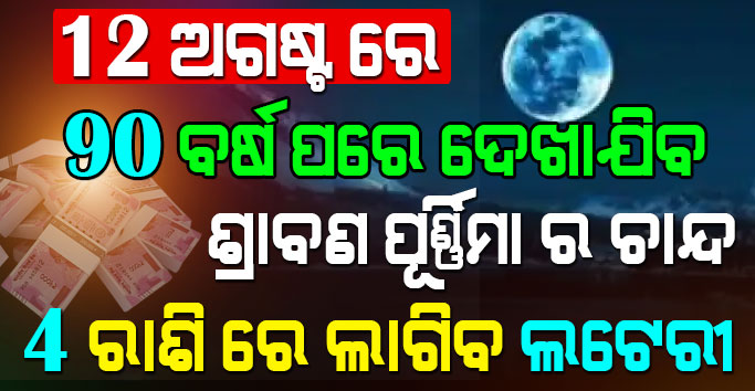 ଅଗଷ୍ଟ 12 ତାରିଖ ଦୀର୍ଘ 90 ବର୍ଷ ପରେ ଦେଖାଯିବ ଶ୍ରାବଣ ପୂର୍ଣ୍ଣିମାର ଚାନ୍ଦ, ଏହି 4ଟି ରାଶିରେ ଲାଗିବ ଲଟେରୀ