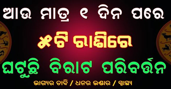 ଆଉ ମାତ୍ର ୧ ଦିନ ପରେ ୫ଟି ରାଶିରେ ଘଟୁଛି ବିରାଟ ପରିବର୍ତ୍ତନ, ମିଳିବ ଭାଗ୍ୟର ଚାବି ଧନର ଭଣ୍ଡାର ସ୍ୱାସ୍ଥ୍ୟ ସମସ୍ୟାରୁ ମୁକ୍ତି