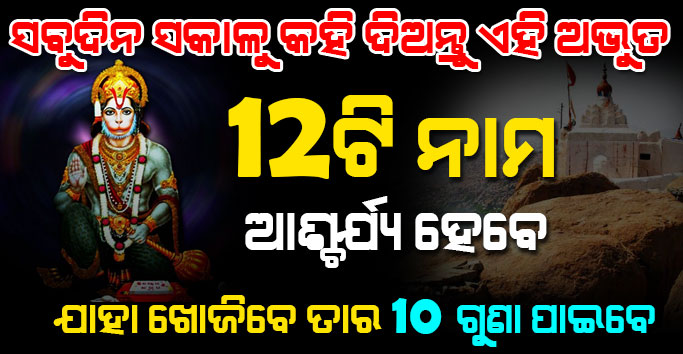 ଭଗବାନ ହନୁମାନ ଜି ରାମ ଭକ୍ତ ବୋଲି କୁହା ଯାଏ ଆପଣ ଯଦି ତାଙ୍କ ଶରଣ ରେ ରହିବେ କେଉଁ ଭି ପାପ ଆପଣଙ୍କୁ କେବେ ହେଲେ ଭି ଛୁଇଁବ ନି । ଆପଣ ଯଦି ଏହି ନାମ କୁ ମଙ୍ଗଳ ବାର ଦିନ ଠାରୁ କହିବା ଆରମ୍ଭ କରିବେ ତେବେ ଏହା ଆପଣଙ୍କ ପାଇଁ ଖୁବ ଭଲ ହେବ । ରାମଭକ୍ତ, ମହାବଳୀ, ମହାବୀର, ହନୁମାନସ, ବଜାରଙ୍ଗିବାଲି, ଶଙ୍କର ସୁମନ, କେଶରୀ ନନ୍ଦନ, ଆଞ୍ଜନି ପୁତ୍ର, ପବନ ସୂତ୍ର, ଅମିତ ବିକ୍ରମ, ସ୍ମେଷ୍ଟ, ଲକ୍ଷଣ ପ୍ରାଣଦାତା । ଏହି 12 ନାମ ଆପଣଙ୍କୁ କହିବାର ଅଛି ସକାଳଉ ଉଠିବା ମାତ୍ରେ । ତା ପରେ ଜୀବନର ସମସ୍ଯା କମ ହେବା କୁ ଲାଗିବ ।