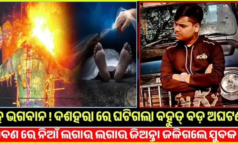 ହେ ଭଗବାନ ! ଦଶହରା ରେ ଘଟିଗଲା ବହୁତ୍ ବଡ଼ ଦୁଃଖ ଘଟଣା , ରାବଣ ରେ ନିଆଁ ଲଗାଇ ଲଗାଉ ଜିଅନ୍ତା ପୋଡ଼ିଗଲେ ଯୁବକ