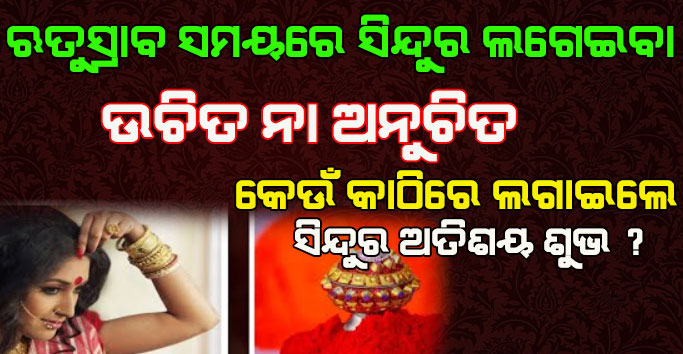 ବନ୍ଧୁଗଣ ବିବାହିତା ମହିଳା ମାନଙ୍କର ସଜବାଜ ହେବା ପାଇଁ ଥିବା ଶ୍ରୁଙ୍ଗାର ଗୁଡିକ ମଧ୍ୟରୁ ସିନ୍ଦୁର ଅନ୍ୟତମ । ସିନ୍ଦୁର ହେଉଛି ସଧବା ମହିଳା ମାନଙ୍କର ପରିଚୟ । ସିନ୍ଦୁର ଲଗାଇବା ଦ୍ଵାରା ବିବାହିତା ମହିଳାଙ୍କ ସ୍ଵାମୀଙ୍କର ମଙ୍ଗଳ ହେବା ସହ ଆୟୁଷ ମଧ୍ୟ ବଢିଥାଏ । ଏଥିସହ ପରିବାରରେ ସୁଖ, ସମୃଦ୍ଧି ଆସିଥାଏ । ତେବେ ଅନେକ ମହିଳା ମାନଙ୍କର ପ୍ରଶ୍ନ ରହିଥାଏ ? ଯେ ଋତୁସ୍ରାବ ସମୟରେ ମହିଳା ମାନେ ସିନ୍ଦୁର ଲଗାଇବା ଉଚିତ କି ଅନୁଚିତ । ତେବେ ଏଠାରେ କହିବା ପାଇଁ ଚାହିଁବୁ ।