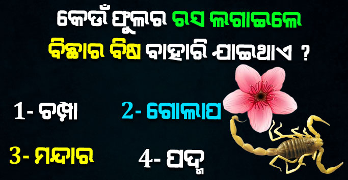 10+GK Quiz- କେଉଁ ଫୁଲର ପାଖୁଡା କୁ ବାଟି କି ଲଗାଇଲେ ବିଛା ବିଷ ବାହାରି ଯାଇଥାଏ ?