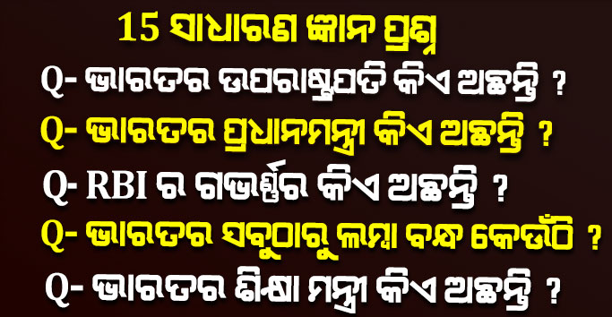 15+ ସାଧାରଣ ଜ୍ଞାନ ପ୍ରଶ୍ନ । ଭାରତର ପ୍ରଧାନମନ୍ତ୍ରୀ କିଏ ଅଛନ୍ତି ? ଭାରତର ରାଷ୍ଟ୍ରପତି କିଏ ଅଛନ୍ତି ?