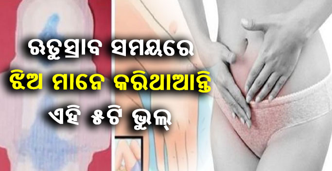 ନମସ୍କାର ବନ୍ଧୁଗଣ, ଆପଣମାନଙ୍କୁ ଆମର ଏହି ଲେଖାକୁ ସ୍ଵାଗତ । ଆଜି ଆମେ ଆପଣଙ୍କୁ ସ୍ୱାସ୍ଥ୍ୟ ସମ୍ବନ୍ଧୀୟ ଏକ ଟିପ୍ସ ଦେବାକୁ ଯାଉଛୁ । ଯେମିତି କି ଆପଣ ଜାଣିଛନ୍ତି ପ୍ରତ୍ୟକ ମାସରେ ନାରୀ ମାନଙ୍କର ରୁତୁସ୍ରାବ ହୋଇଥାଏ । ତେବେ ସେହିସମୟରେ ମହିଳାମାନେ କିଛି ଭୁଲ କରିଥାନ୍ତି ଯାହା କିନ୍ତୁ କରିବା ଅନୁଚିତ । ଯେଉଁ ମହିଳା ଅଶିକ୍ଷିତ କିଛି ଯାନୀ ନାହାନ୍ତି ସେମାନେ ଟିଆର ଏ ଭୁଲ କରନ୍ତି ହିଁ ଶିକ୍ଷିତ ମହିଳାମାନେ ମଧ୍ୟ ଏହି ଭୁଲ କରିଥାନ୍ତି । ତେବେ କଣ ସେହି ଭୁଲ ଆସନ୍ତୁ ଜାଣିବା ।