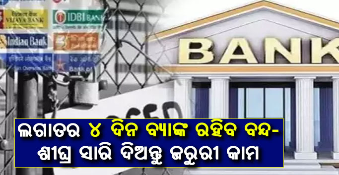 ବ୍ୟାଙ୍କ ଷ୍ଟ୍ରାଇକ: ଲଗାତାର ୪ଦିନ ବନ୍ଦ ରହିବ ବ୍ୟାଙ୍କ ! କରି ନିଅନ୍ତୁ ସମସ୍ତ ଜରୁରୀ କାମ- ଜାଣନ୍ତୁ କଣ ଅଟେ କାରଣ