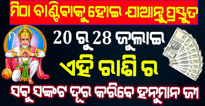 ବନ୍ଧୁଗଣ ପ୍ରଭୁ ହନୁମାନ ଙ୍କ କୃପାରୁ ଅଚାନକ ଚମକିବ ଏହି ରାଶିଙ୍କର ଭାଗ୍ୟ । ମିଳିବାକୁ ଯାଉଛି ଅନେକ ପ୍ରକାରର ବଡ ବଡ ଖୁସି ଖବର । ପ୍ରଭୁ ହନୁମାନ 12ଟି ରାଶି ମଧ୍ୟରୁ କିଛି ରାଶିଙ୍କ ଉପରେ ବହୁତ ପ୍ରସନ୍ନ ହୋଇଛନ୍ତି । ଯାହା କାରଣରୁ ଏମାନଙ୍କ ଜୀବନରେ ଦୁଃଖ କଷ୍ଟ ଦୂର ହେବାକୁ ଯାଉଛି । ଏହି ରାଶିଙ୍କର ଜୀବନ ବଦଳିଯିବ । ଏହି ରାଶିଙ୍କର 20 ଜୁଲାଇ ସକାଳ 9:30 ରୁ 28 ଜୁଲାଇ ଯାଏଁ ଆକାଶ ଛୁଆଁ ହେବ ଏମାନଙ୍କର ଭାଗ୍ୟ । ଆସନ୍ତୁ ଜାଣିବା ବିସ୍ତାର ଭାବେ ।