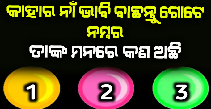 ଆଜି ଆମେ ଆପଣଙ୍କୁ କହିବୁ ଆପଣ 3ଟି ନମ୍ବର ମଧ୍ୟ ରୁ କୌଣସି ଗୋଟେ ଚୟନ କରି କେମିତି ଜାଣିବେ ଆପଣଙ୍କ ପର୍ଶନ ଙ୍କ ମନରେ ଆପଣଙ୍କ ପାଇଁ କଣ ଅଛି । ଆପଣ ଯାହାଙ୍କୁ ଭଲ ପାଉଛନ୍ତି ସେ ଆପଣଙ୍କୁ ନେଇ କଣ ବିଚାର କରୁଛନ୍ତି । ଆସନ୍ତୁ ଜାଣିବା ସଂପୂର୍ଣ୍ଣ ବିବରଣୀ ।