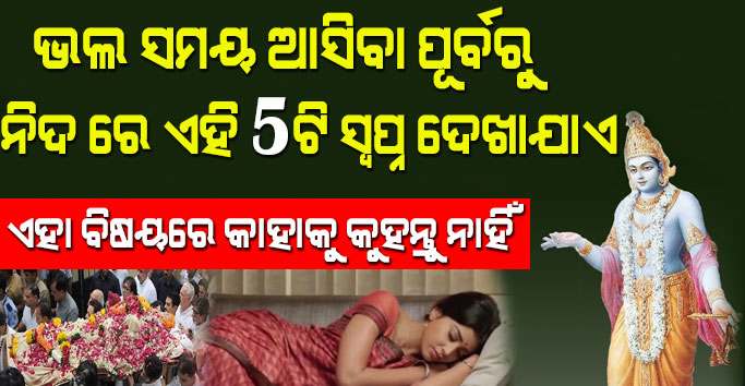 ଭଲ ସମୟ ଆସିବା ପୂର୍ବରୁ ନିଦ ରେ ଦେଖାଯାଏ ଏହି 5ଟି ସ୍ଵପ୍ନ! ଏହା ବିଷୟରେ କାହାକୁ କୁହନ୍ତୁ ନାହିଁ- Swapna Shastra