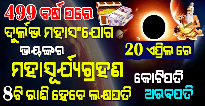 499 ବର୍ଷ ପରେ ଦୁର୍ଲଭ ମହାସଂଯୋଗ 20 ଏପ୍ରିଲ ରେ ସୂର୍ଯ୍ୟଗ୍ରହଣ 8ଟି ରାଶି ହେବେ ଅରବପତି