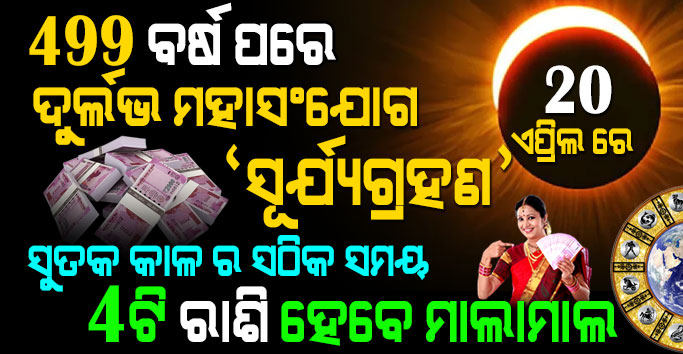 499 ବର୍ଷ ଅପରେ ଦୁର୍ଲଭ ମହାସଂଯୋଗ, 20 ଏପ୍ରିଲରେ ବର୍ଷର ପ୍ରଥମ “ସୂର୍ଯ୍ୟଗ୍ରହଣ”, 4ଟି ରାଶି ହେବେ ମାଲାମାଲ