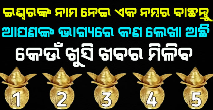 ବନ୍ଧୁଗଣ ଜୀବନରେ ସୁଖ ଓ ଦୁଃଖ ତ ଲାଗିକି ରହିଥାଏ । ହେଲେ ଆପଣଙ୍କ ଜୀବନକୁ ବର୍ତ୍ତମାନ କେଉଁ ପ୍ରକାର ପରିବର୍ତ୍ତ୍ନ ଆସିବା ପାଇଁ ଯାଉଛି । ଏହି ପରିବର୍ତ୍ତନ ମଧ୍ୟରେ ଆପଣଙ୍କୁ କେଉଁ ନୂଆ ଖୁସି ଖବର ମିଳିବା ପାଇଁ ଯାଉଛି । ଏହି ସବୁ ବିଷୟରେ ଆଜି ଆମେ ଆପଣଙ୍କୁ ଏଠାରେ କହିବା ପାଇଁ ଯାଉଛୁ । ଏଥିପାଇଁ ଆପଣଙ୍କୁ 1, 2, 3, 4 ଓ 5 ଏଥିରୁ କୌଣସି ଏକ ନମ୍ବର ନିଜ ପାଇଁ ଆଖି ବନ୍ଦ କରି ବାଛିନିଅନ୍ତୁ ।