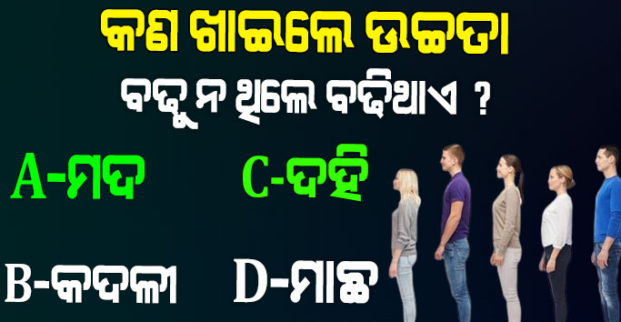 GK- କଣ ଖାଇଲେ ଉଚ୍ଚତା ବଢିଥାଏ ? ଏହା ସହ ଆହୁରି 10+ ସାଧାରଣ ଜ୍ଞାନ ପ୍ରଶ୍ନ ଓ ଏହାର ଉତ୍ତର