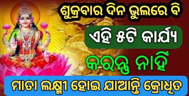 ଶୁକ୍ରବାର ଦିନ ଭୁଲରେ ମଧ୍ୟ ଏହି ପାଞ୍ଚଟି କାର୍ଯ୍ୟ କରନ୍ତୁ ନାହିଁ, ମାତା ଲକ୍ଷ୍ମୀ କ୍ରୋଧିତ ହୋଇଥାନ୍ତି ଏବଂ ସବୁବେଳେ ଗରିବ ଅବସ୍ଥା ରହିଥାଏ ।