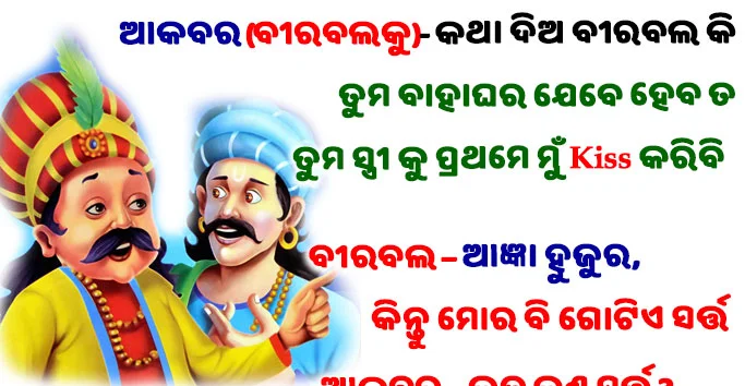 Odia Jokes- ଆକବର- କଥା ଦିଅ ବୀରବଲ କି ତୁମ ବାହାଘର ଯେବେ ହେବ ତ ତୁମ ସ୍ତ୍ରୀ କୁ ପ୍ରଥମେ ମୁଁ କିସ କରିବି, ବୀରବଲ – ଆଜ୍ଞା ହୁଜୁର, କିନ୍ତୁ ମୋର ବି ଗୋଟିଏ ସର୍ତ୍ତ…
