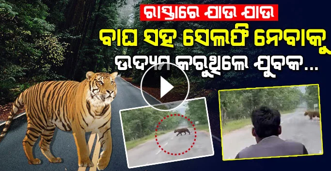 ରାସ୍ତାରେ ବୁଲୁଥିଲା ବାଘ, ସେଲଫି ନେଉଥିଲେ ଯୁବକ, ହଠାତ ଯାହା ହେଲା ନା…ଦେଖନ୍ତୁ ଏହି video