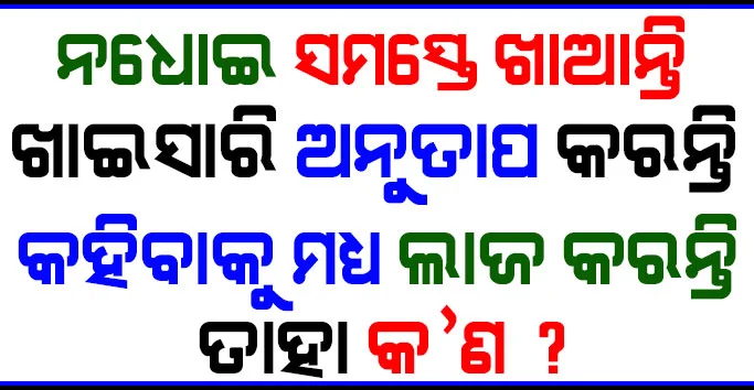 Interesting Odia Gk- ନ ଧୋଇ ସମସ୍ତେ ଖାଆନ୍ତି, ଖାଇସାରି ଅନୁତାପ କରନ୍ତି, କହିବାକୁ ମଧ୍ୟ ଲାଜ କରନ୍ତି, କୁହନ୍ତୁ ତାହା କଣ ?