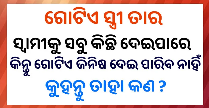 Interesting Gk Questions- ଗୋଟିଏ ସ୍ତ୍ରୀ ତାର ସ୍ଵାମୀକୁ ସବୁ କିଛି ଦେଇପାରେ କିନ୍ତୁ ଗୋଟିଏ ଜିନିଷ ଦେଇ ପାରେ ନାହିଁ, କୁହନ୍ତୁ ତାହା କଣ ?