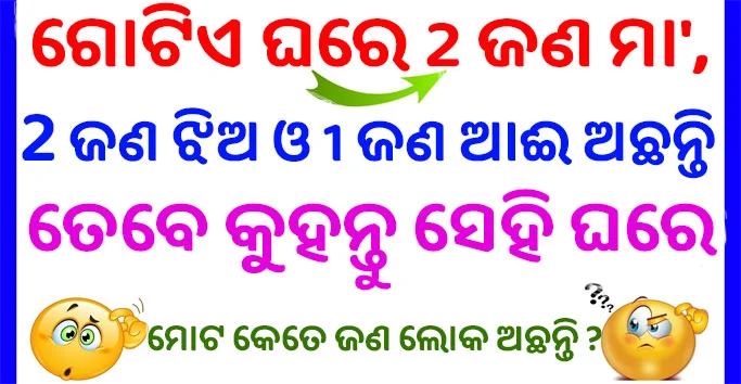 Interesting Gk Questions- ଗୋଟିଏ ଘରେ 2 ଜଣ ମା’, 2 ଜଣ ଝିଅ ଓ 1 ଜଣ ଆଈ ଅଛନ୍ତି ତେବେ କୁହନ୍ତୁ ସେହି ଘରେ ମୋଟ କେତେ ଜଣ ଲୋକ ଅଛନ୍ତି ?