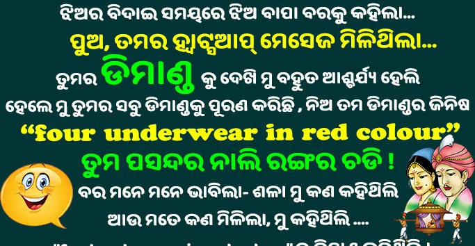 ଝିଅ ବାପା- ପୁଅ, ତମର ୱାଟସପ୍ ମେସେଜ ମିଳିଥିଲା… ତୁମର ଡିମାଣ୍ଡକୁ ଦେଖି ମୁ ବହୁତ ଆଶ୍ଚର୍ଯ୍ୟ ହେଲି