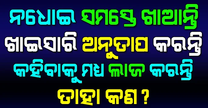 Interesting Gk Questions- ନଧୋଇ ସମସ୍ତେ ଖାଆନ୍ତି ଖାଇସାରି ଅନୁତାପ କରନ୍ତି କହିବାକୁ ମଧ୍ୟ ଲାଜ କରନ୍ତି, କୁହନ୍ତୁ ତାହା କଣ ?