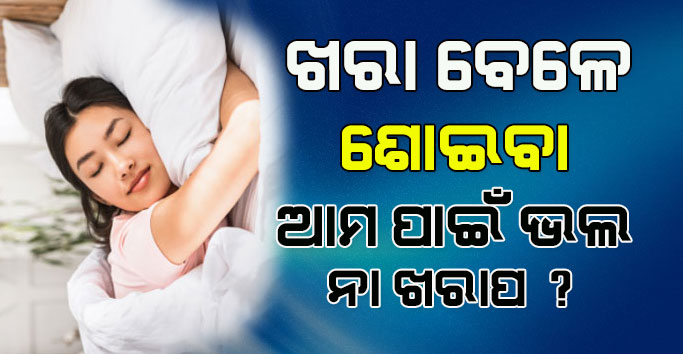 ଖରାବେଳେ ଶୋଇବା ଆମ ପାଇଁ ଭଲ ନା ଖରାପ ? ବନ୍ଧୁଗଣ ଶୋଇବା ମନୁଷ୍ୟ ଶରୀର ପାଇଁ ନିତାନ୍ତ ଆବଶ୍ୟକ ହୋଇଥାଏ । କାରଣ ଭଲ ନିଦ୍ରା ଦ୍ଵାରା ଶରୀର ମଧ୍ୟ ଭଲ ରହିଥାଏ । ତେଣୁ ରାତିରେ 6 ରୁ 7 ଘଣ୍ଟା ନିହାତି ଭାବେ ପ୍ରତ୍ଯେକ ବ୍ୟକ୍ତି ଶୋଇବା ଉଚିତ । ଏହା ତାଙ୍କ ଶରୀର ପାଇଁ ଭଲ ହୋଇଥାଏ । ହେଲେ ବନ୍ଧୁଗଣ ବହୁତ ଲୋକ ଦିନ ବେଳା ଅର୍ଥାତ ଦିପହର ସମୟରେ ଖାଇ ସାରି ଶୋଇପଡିଥାନ୍ତି। ତେବେ ଖରା ବେଳେ ଶୋଇବା ଦେହ ପାଇଁ ଭଲ ନା ଖରାପ ଆଜି ଏଠାରେ ଆଲୋଚନା କରିବା ।