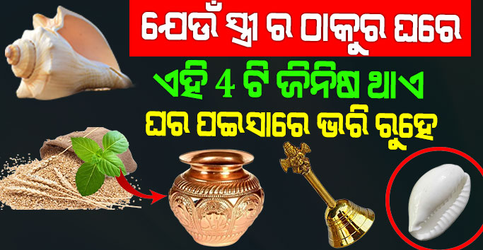ଦିତୀୟରେ ପୂଜା ଘରେ ଶଙ୍ଖ ଓ ତୃତୀୟରେ ଘଣ୍ଟି ରଖିବା ମଧ୍ୟ ଅତ୍ୟନ୍ତ ଜରୁରୀ ହୋଇଥାଏ । ଠାକୁର ଘରେ ଇଶ୍ଵରଙ୍କ ସାମ୍ନାର ଡାହାଣ ପାଖରେ ତମ୍ବା ପାତ୍ରରେ ଏକ କଳସରେ ଜଳ ଭର୍ତ୍ତି ରଖିବା ମଧ୍ୟ ଶୁଭ ହୋଇଥାଏ । ତେବେ ପ୍ରତ୍ଯେକଙ୍କ ଠାକୁର ଘରେ ଏହି ସମସ୍ତ ନିୟମ ମାନିବା ସହ ଏହି ୪ ଟି ଜିନିଷ ଅବଶ୍ୟ ରଖନ୍ତୁ ।