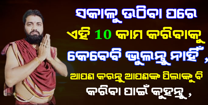 ନମସ୍କାର ବନ୍ଧୁଗଣ । ସାଧାରଣତଃ ମଣିଷ ସକାଳ ଉଠିଲା ପରେ ତାର ନିତ୍ୟ କାମ ସାରି ଭଗବାନଙ୍କୁ ପୂଜା କରି ଦିନକୁ ପ୍ରାରମ୍ଭ କରିଥାଏ । ତେବେ ଅଜାଣତାରେ ଆମେ ଏମିତି କେତେକ ଭୁଲି କରିଥାଉ ଯାହା ଅନୁଚିତ୍ ହୋଇଥାଏ । ତେବେ ଆଜି ଆମେ ଆପଣଙ୍କୁ ଶାସ୍ତ୍ର ଅନୁସାରେ ସକାଳ ଉଠି ଏହି 10 ଟି କାମ ସମ୍ପର୍କରେ କହିବୁ । ଯାହାକୁ କରିବା ନିହାତି ଜରୁରୀ ଓ ଆମ ପାଇଁ ଶୁଭଦାୟକ ଅଟେ । ପ୍ରାୟତ ସମସ୍ତ ବ୍ୟକ୍ତି ଚାହେଁ କି ତାର ଦିନତା ମଙ୍ଗଳମୟ ହେଉବୋଲି ।