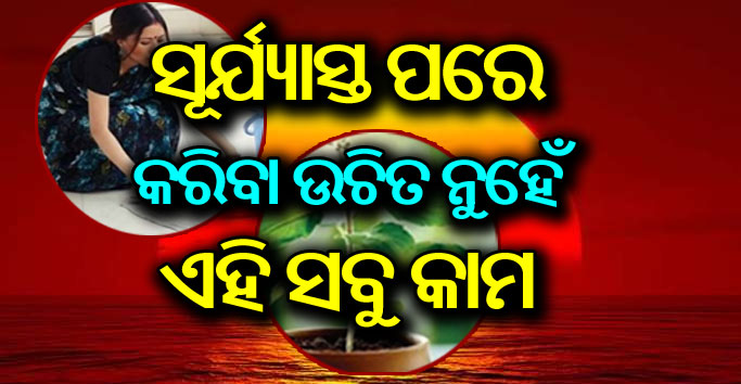 ସୂର୍ଯ୍ୟାସ୍ତ ଓ ସୂର୍ଯ୍ୟ ଉଦୟକୁ ସକାଳ ଓ ସନ୍ଧ୍ୟା ସମୟ କୁହାଯାଏ । ସେଥିପାଇଁ ଶାସ୍ତ୍ରରେ ଏହି ସମୟକୁ ବହୁତ ମହତ୍ତ୍ଵପୂର୍ଣ୍ଣ ସମୟ କୁହାଯାଇଥାଏ । ଶାସ୍ତ୍ର ଅନୁଯାୟୀ ସୂର୍ଯ୍ୟାସ୍ତ ପୂର୍ବରୁ କିଛି କାମକୁ ଶୁଭ କୁହାଯାଇ ନଥାଏ । ଆଜି ଆମେ ଆପଣମାନଙ୍କୁ ସେହି ୫ ଟି କାମ ବିଷୟରେ କହିବୁ । ଯାହାକୁ ଭୁଲ ସେ ମଧ୍ୟ କରନ୍ତୁ ନାହିଁ । ତେବେ ଆସନ୍ତୁ ଜାଣିବା ଏହା ବିଷୟରେ ।