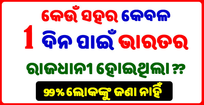 ୧୫- କେଉଁ ସହର ଗୋଟିଏ ଦିନ ପାଇଁ ଭାରତର ରାଜଧାନୀ ହେଇଥିଲା ?