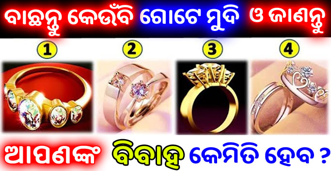 ବ୍ୟକ୍ତିର କହିବା ଓ ତାହାର ପସନ୍ଦ କରାଯାଉଥିବା ଜିନିଷ ତାହାର ଜୀବନ ଓ ସ୍ଵଭାବ ସହ ଜଡିତ କିଛି ରହସ୍ୟ ବିଷୟରେ ବି କହିଥାଏ । ତେବେ ଏହି ୪ଟି ମୁଦି ମଧ୍ୟରୁ ଗୋଟିଏ ବାଛନ୍ତୁ ଓ ଜାଣନ୍ତୁ ଆପଣଙ୍କ ବିବାହ କିପରି ହେବ ।